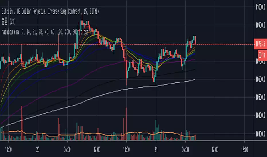 하나의 지표 추가 만으로 여러개의 지수이평선을 사용하실 수 있고, 제가 자주 사용하는 7,14,21,28,40,60,120,200,300선 넣어 놨습니다.
