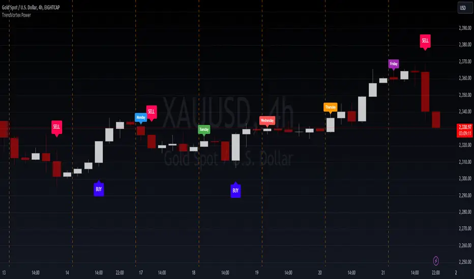 This indicator provides visual and alert-based indications of buy and sell signals based on swing highs and lows, alongside labeling each trading day of the week in a distinctive manner. It's designed to assist traders in identifying potential entry and exit points based on these technical signals. Adjustments can be made to parameters such as the swing number (no) and color schemes to fit specific trading strategies or preferences.