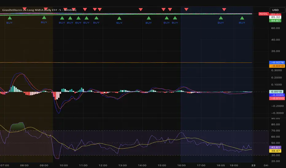 Sends buy and sell signals on a 4 min chart analyzing MACD. BUY WHEN MACD IS TURNING UPWARD AND SELL WHEN MACD IS TRUNING SOUTH