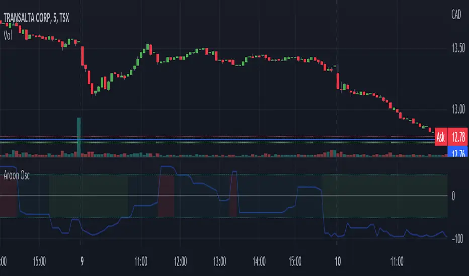 The Aroon Oscillator is intended to highlight short-term trend changes by comparing the number of periods since the last high with the number of periods since the last low.