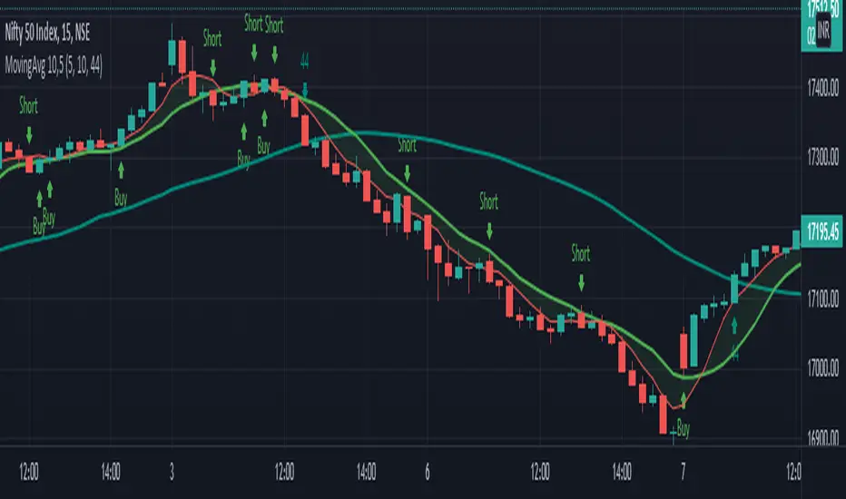 when candle cross above or below moving average 10 or 5 its gives signals buy or sell ....