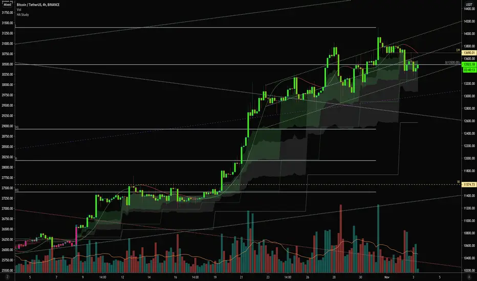Shows trends based on 1W and 3D heikin ahsi candles and moving averages crossing next possible close prediction on 1W and 3D heiking ashi candles