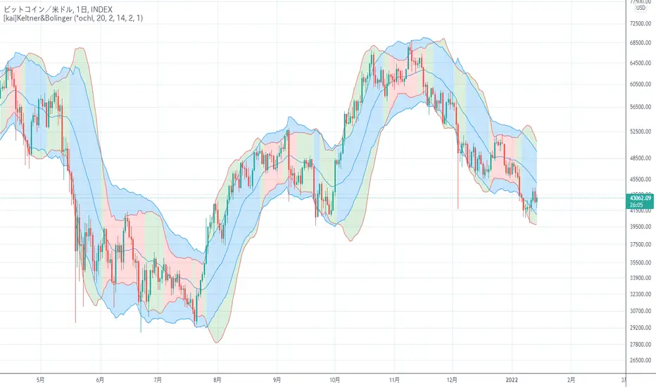 ログスケール用にログ計算したボリンジャーバンド(BB)とケルトナーチャンネル(KC)を同時に表示するインジケーターです