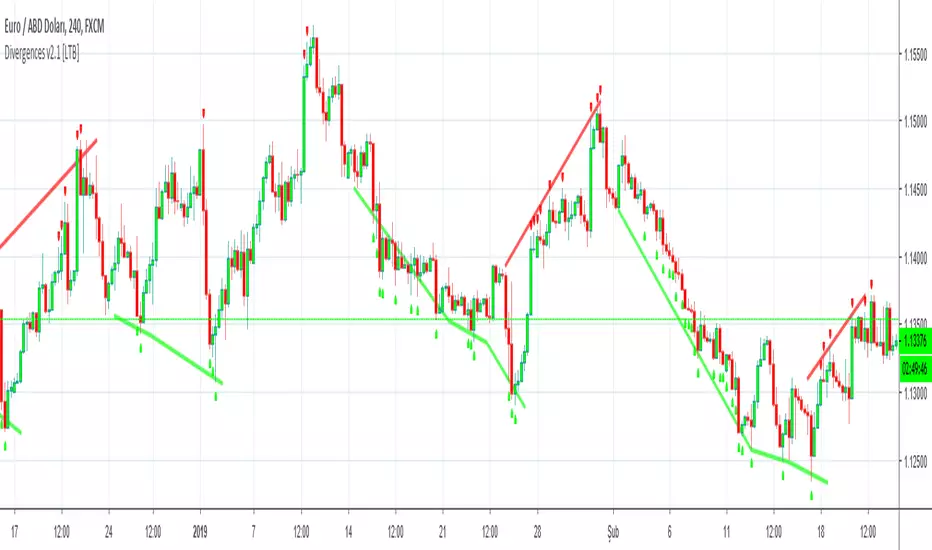 This script is developed to find Divergences for many indicators. it analyses divergences and then draws line on the graph. red for negatif, lime for positive divergences.