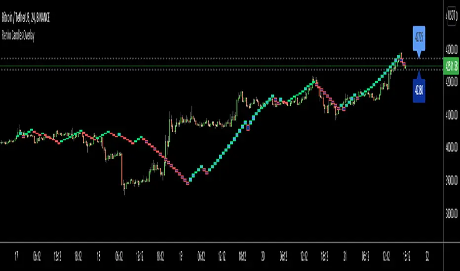 For long time I got many request for Renko Candles and now here it's, Renko Candles Overlay. I tried to make almost everything optional, so you can play with the options as you want.