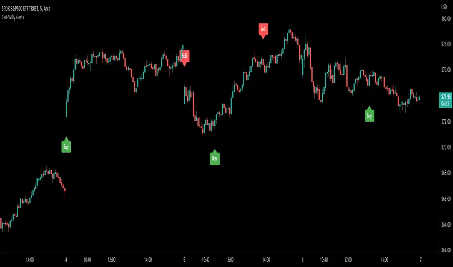 This is the Exit-Willy indicator. It issues Buy and Sell signals based on exit data from different moving averages and the Williams Percent R. It also has a LSMA filter. All values are adjustable. I like to use it with a higher Exit value being as it filters some of the false signals. There are multiple different settings to change and alter.