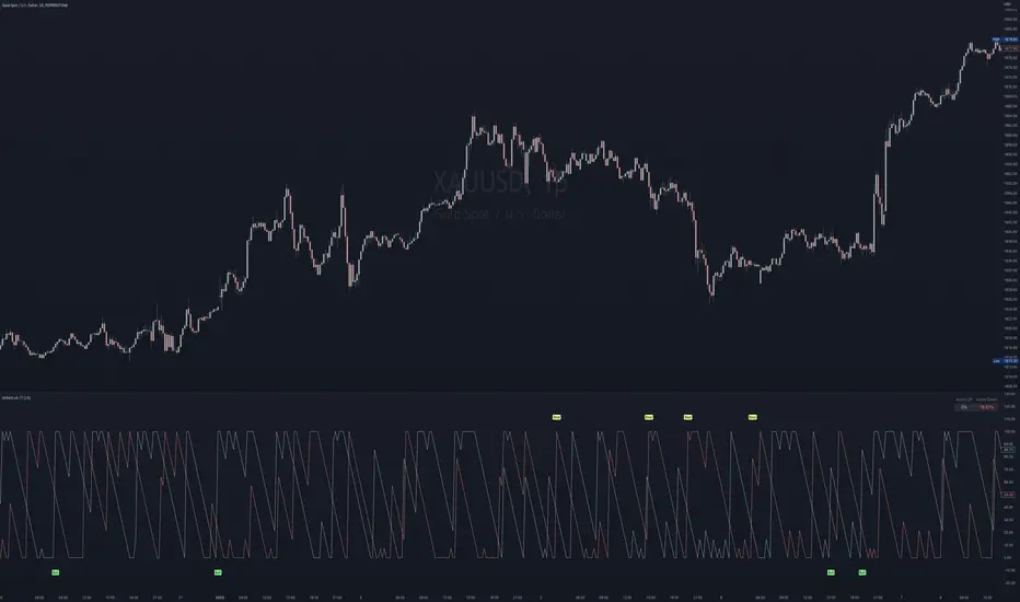 It will be part of a display of bullish and bearish signals by using the condition of the upper line cross lower line and HMA 200 cross under/over EMA 12, and also upper/lower line must be higher than 70%