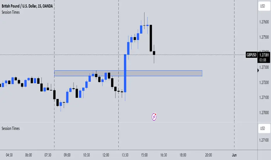 Description:This indicator simply when enabled will draw dashed lines at each of the session openings. This is based on UTC+1 Time. There will be lines at 00:00 & 08:00 (Asian Session), lines at 08:00 & 13:00 (London Session) and finally lines at 13:00 & 00:00 (New York Session).