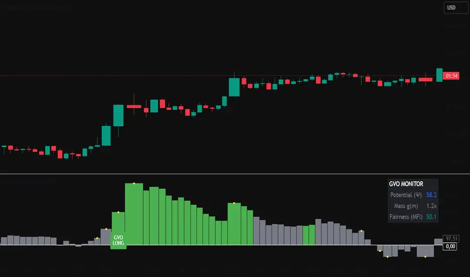 The Mizan (Fairness) Filter: Unique to the GVO framework is the Fairness Filter. By integrating the Money Flow Index (MFI), the script monitors "Greed" and "Fear" zones. It prevents entries in "Unfair" zones (extremes), ensuring that signals occur only when the market is in a state of balanced participation.