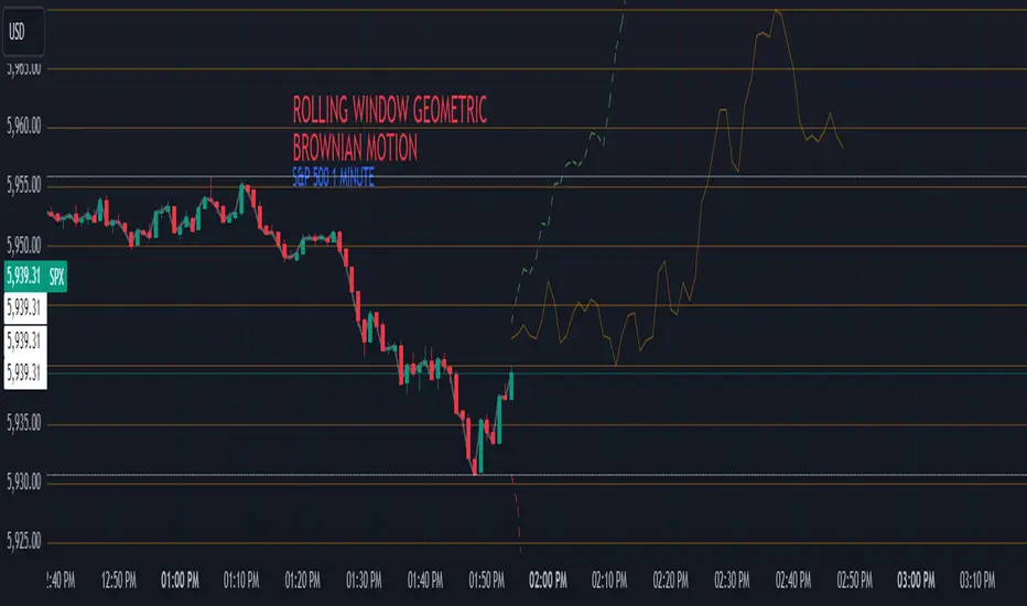 The Rolling GBM Projections + EV & Adjustable Confidence Bands indicator provides traders with a robust, dynamic tool to model and project future price movements using Geometric Brownian Motion (GBM). By combining GBM-based simulations, expected value (EV) calculations, and customizable confidence bands, this indicator offers valuable insights for decision-making and risk management.