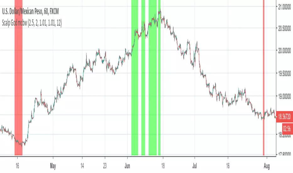 This is the SCALP GOD. It will clearly label market tops and bottoms for you, if you are scalping and looking to open or close a position this indicator will mark the local highs and lows for you. Or if you are a swing trader this can also give good signals as this indicator works on any pair and any timeframe! When you see the chart turning green you know for sure that a market top is forming, if the chart is turning red you know for sure a market bottom is forming. It is sometimes the absolute top or bottom and sometimes just an important local top or bottom. PM me if you find a better top & bottom indicator because I am trying to make this better than everything out there.