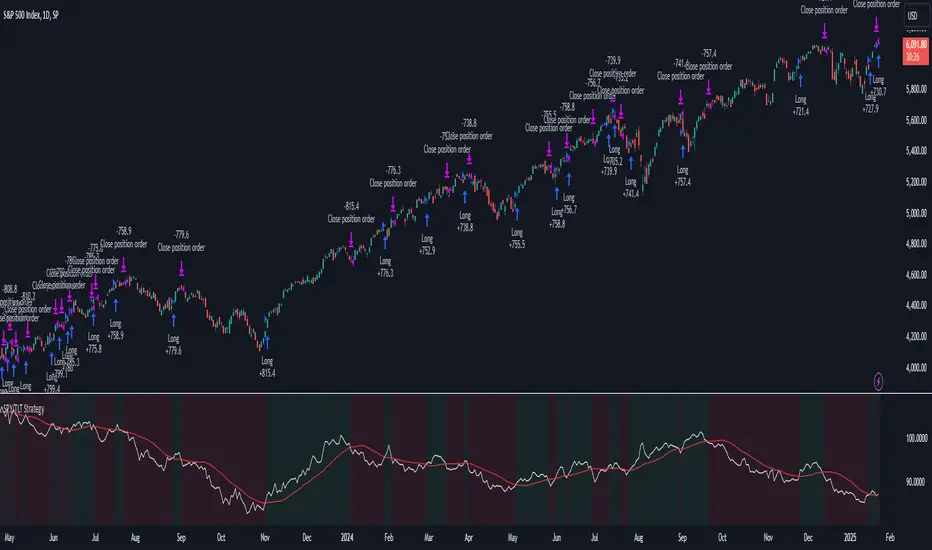 The "SPY/TLT Strategy" is a trend-following crossover strategy designed to trade the relationship between TLT and its Simple Moving Average (SMA). The default configuration uses TLT (iShares 20+ Year Treasury Bond ETF) with a 20-period SMA, entering long positions on bullish crossovers and exiting on bearish crossunders. **This strategy is NOT optimized and performs best in trending markets.**