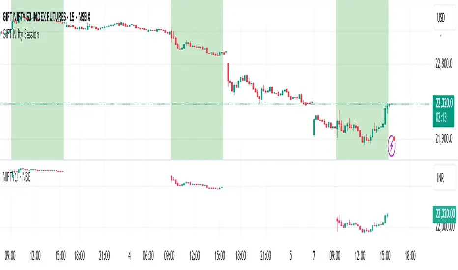 Indian Stock Markets are open only from 9:15 am to 3:30 pm. But Gift Nifty remains open for more than 20 hours. We miss out on a lot of price action that happens on Gift Nifty after Indian markets are closed. This code helps to clearly identify the price action in Gift Nifty which is happening beyond the Indian market hours. Script de código aberto