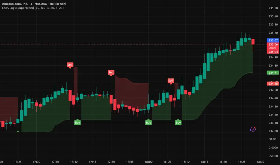EMA Logic SuperTrend is a SuperTrend-style overlay that replaces traditional