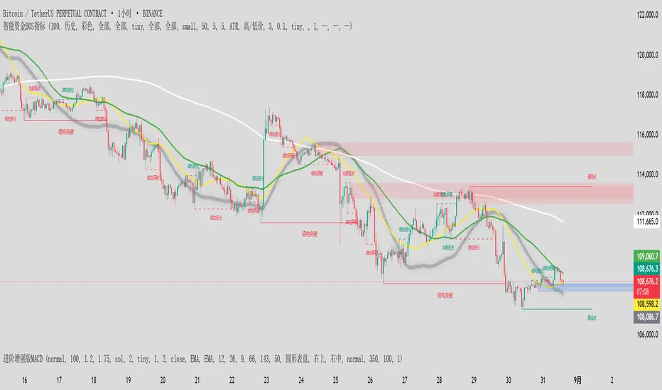 The "Smart Money BOS Indicator" is a complex main chart indicator that integrates multiple market analysis tools. Based on the concept of Smart Money, it analyzes market structure, order block (OB), fair value gap (FVG), and premium/discount areas