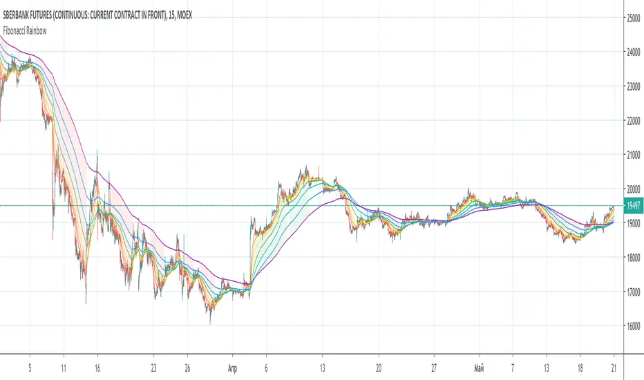 Taken 7 Fibonacci numbers, painted in the colors of the rainbow and highlighted when the rainbow fan is up or down.