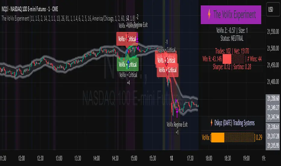 This script, “The VoVix Experiment,” is the result of original research and development. All core logic, algorithms, and visualizations—including the VoVix regime detection engine, adaptive execution, volatility/divergence bands, and dashboard—are proprietary and unique to this project.
