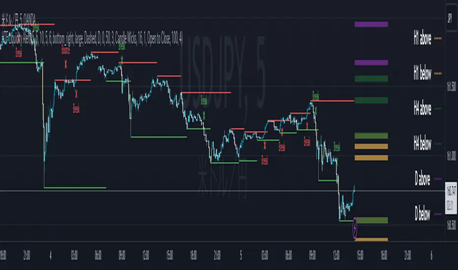 Lines visualize the liquidity pools on the HTF bars. Alerts can be set for each TF's line.