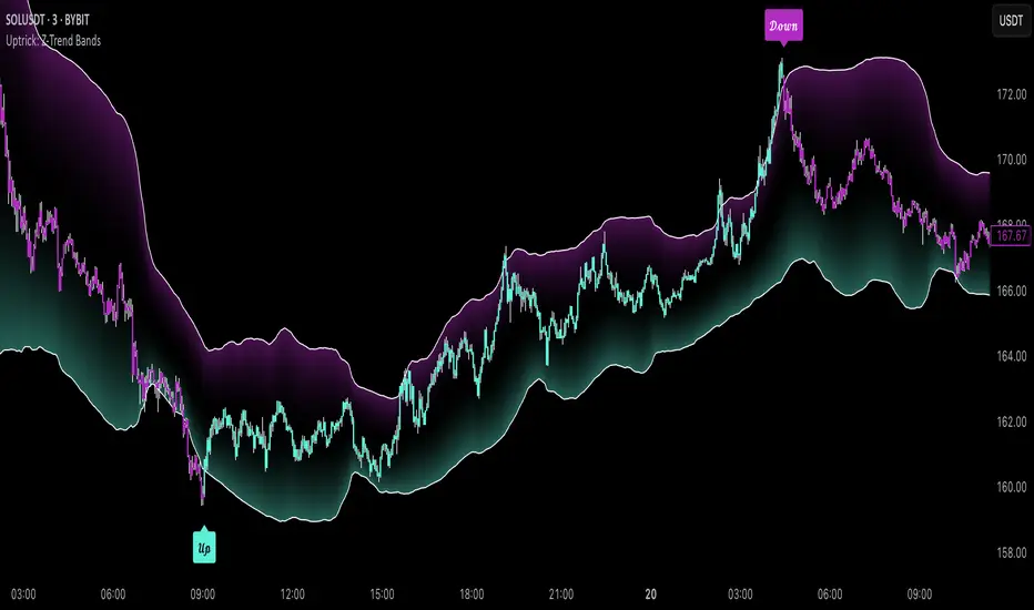By merging a normalized z-score framework, momentum slope confirmation, disciplined signal memory, flexible visuals, and transparent scoring into one Pine Script overlay, Uptrick: Z-Trend Bands offers a powerful yet intuitive tool for intraday mean-reversion trading. Its adaptability to real-time volatility and multi-layered filter logic deliver clear, high-confidence reversal cues without the clutter or confusion of simpler indicators.