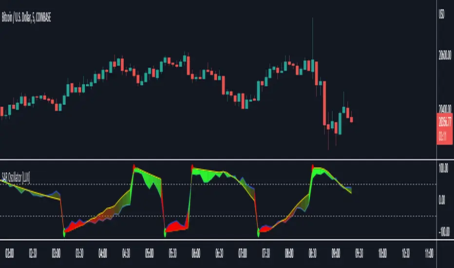 This indicator is a detrended price series using the Parabolic Stop and Reverse (SAR) trailing stop, resulting in a bounded oscillator in the range (-100, 100). The SAR output is also normalized to obtain a noiseless oscillator which can complement the detrended price.