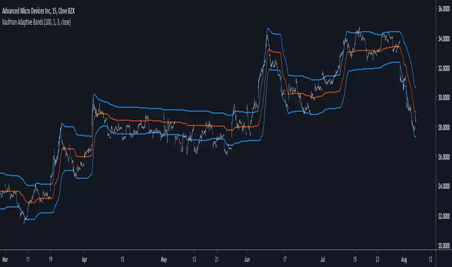 The bands are made by adding/subtracting this volatility indicator with kama.