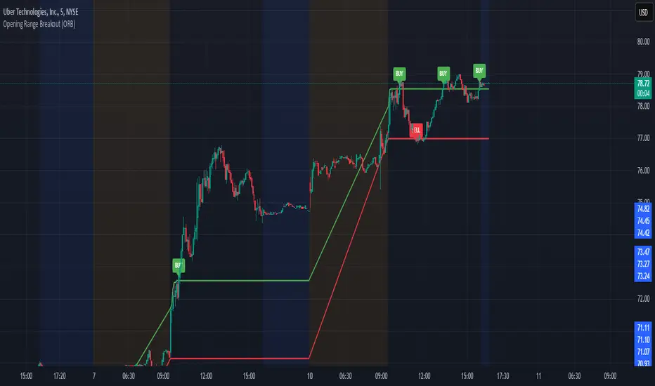 This is an Opening Range Break indicator. Best if used on a 5 minute chart. It plots the opening 30 minutes high and low of a ticker. (meaning mostly for stocks, options, etfs) and then it alerts a buy signal upon break of opening high and a sell signal upon break of opening low. This is a day trading type of indicator and there is a new opening range everyday.