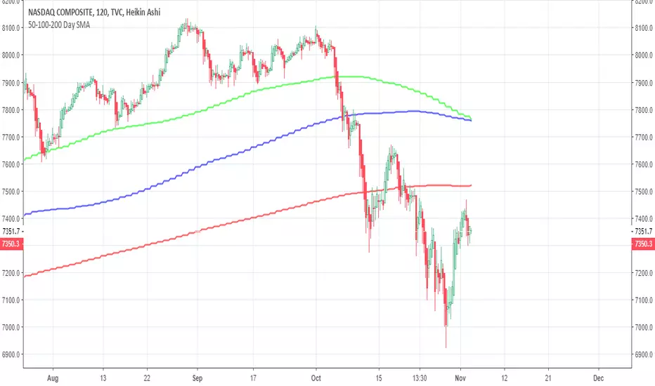 A simple indicator that display the 50, 100, and 200 Daily SMA. It will always display the DAILY 50,100, 200, regardless of the time frame you are looking at. Makes it easy to quickly display these key averages while also looking at smaller timeframes like 1H candles.