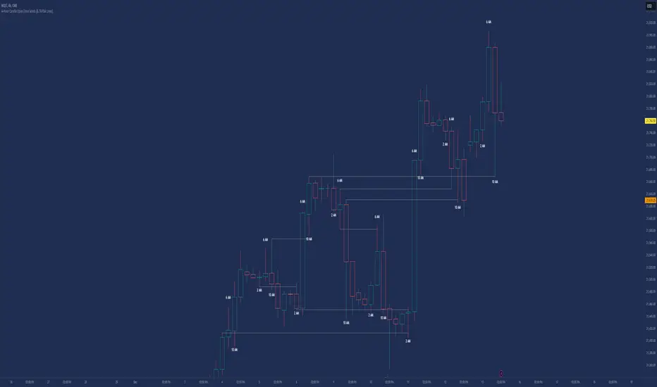 The "4-Hour Candle Opening Times (TAPDA Lines)" indicator integrates key principles of the Time and Price Action Trading Algorithm (TAPTA) with practical tools for analyzing market behavior. This script is designed for traders who leverage the interaction between time and price to identify opportunities in the market. The indicator supports the identification of significant price levels and potential areas of interest based on historical data and recurring patterns tied to specific timeframes.