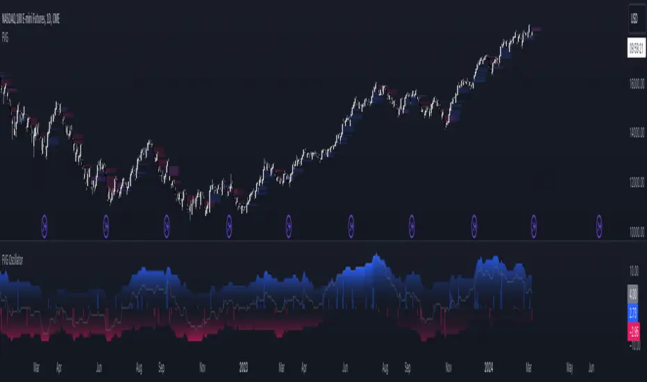 The FVG Oscillator, developed by OmegaTools and available on TradingView, is a specialized analytical tool designed to offer traders insight into the market's potential direction through the lens of Fair Value Gaps (FVGs). This script combines traditional oscillator functionality with a unique focus on FVGs, providing a nuanced approach to understanding market dynamics.