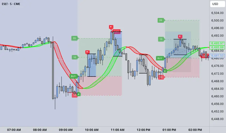 HMA V1 is an intraday trend & risk filter tuned for ES/NQ. It blends adaptive volatility bands with a higher‑timeframe trend bias to highlight cleaner directional opportunities during regular U.S. session hours. It can be applied to other indices and liquid stocks, but it’s optimized for ES/NQ behavior.How to use