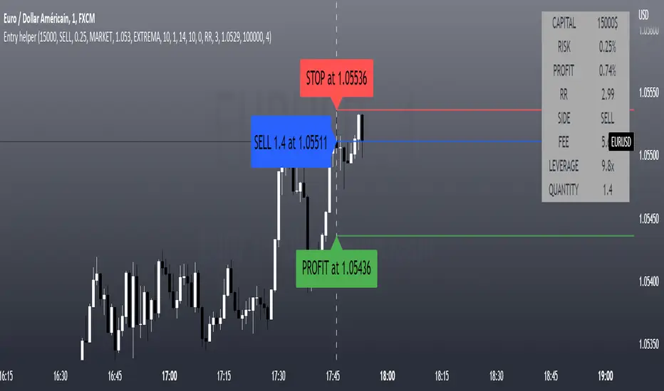 This script is what I call an entry helper as it calculates dynamically the position size, stop loss and take profit levels and more.