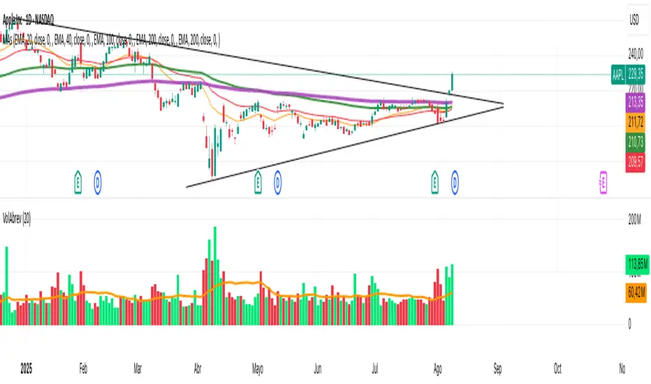 Volume histogram colored by candle direction (green: bullish, red: bearish, gray: neutral).