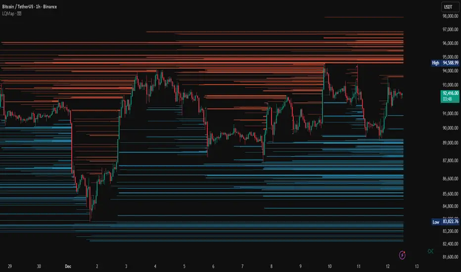 Due to a technical limitation in Pine Script, a maximum of 500 horizontal levels can be drawn. As a result, some historical liquidity levels from earlier bars may not appear on the chart.