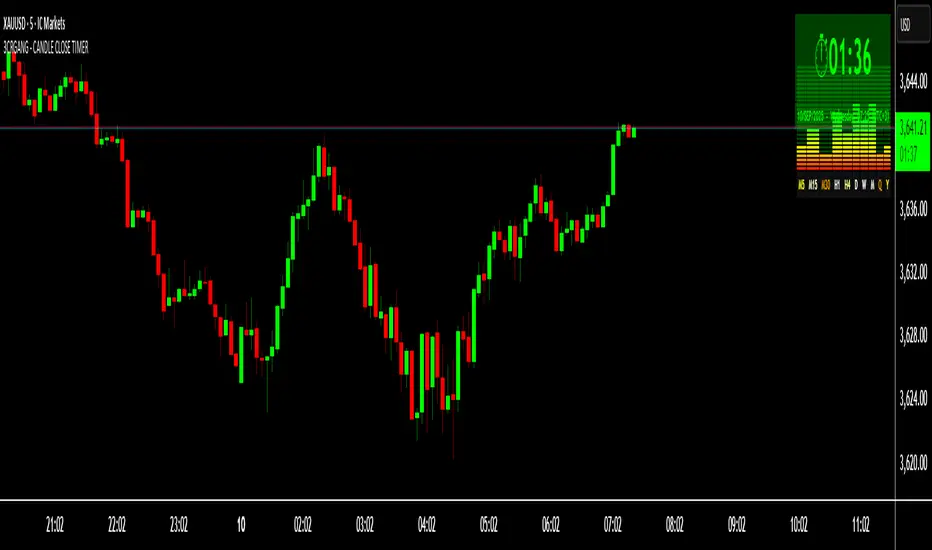 - Candle Timer: Displays the time remaining until the current candle closes, with color-coded visuals based on candle direction (green for up, red for down, gold when nearing close).
