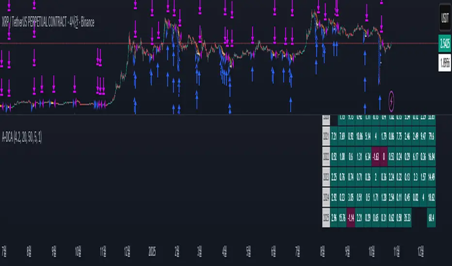 크립토 시장에 특화된 Long only전략입니다. DCA 방식의 분할 매수 전략이 대체로 이익 거래가 아닌 경우, 장기간 탈출하지 못할 리스크를 보완한 전략입니다.