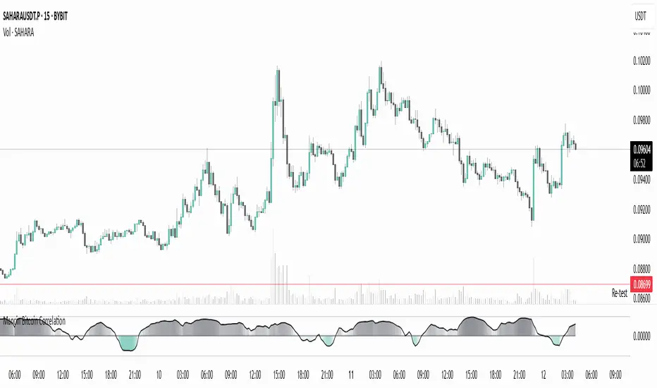 This indicator calculates the correlation coefficient between a selected asset and Bitcoin (default: BYBIT:BTCUSDT) over a specified period, and visualizes it as a line or columns with a dynamic color gradient.