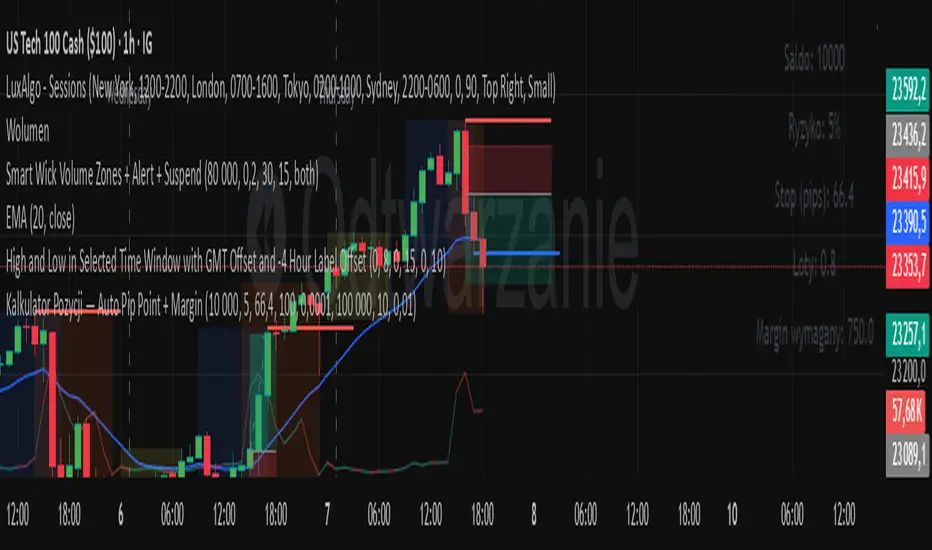 kalkulator wyznacza pozycje na podstawie ryzyka podanego w procentach
