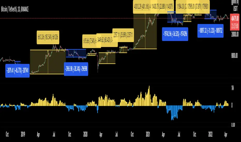 -- Added checkbox to select between EMA and SMA of OBV. The SMA noticeably produces a smoother histogram in some instances. On the BTC hourly (1H) chart using the 99 SMA setting looks nice at a quick glance.Script de código aberto