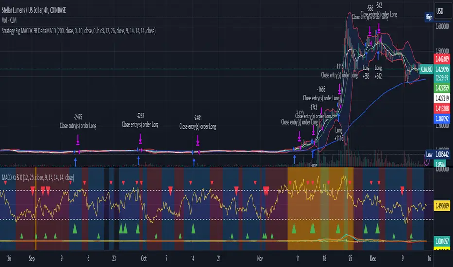 MACD with MACD Derivative, Crossings Above and Below Zero, Shading for ADX Smoothing and Overlayed RSIPrimarily a moving average convergence divergence (MACD) momentum indicator. Displays triangle symbols when the MACD line crosses the signal line (larger triangle when MACD crosses above/below zero to indicator stronger momentum trend). This is paired with a color coded histogram that has darker shades of green/red when MACD is increasing/decreasing or accelerating/decelerating. Also includes a MACD Derivative overlay as a yellow line that shows when momentum has peaked at maximums/minimum, signaled when it crosses through zero.