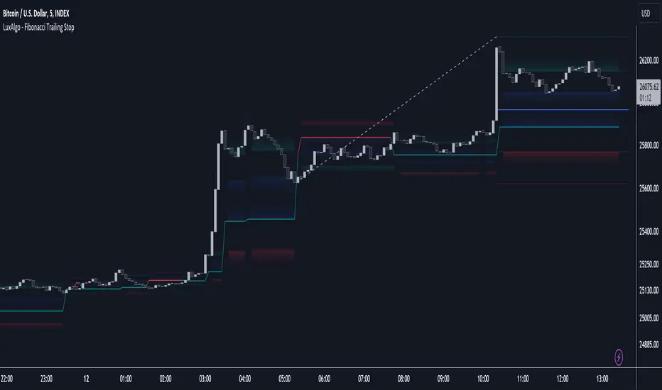 - Every new swing will create or update a new Fibonacci pattern, potentially changing the Fibonacci Trailing Stop (FTS)