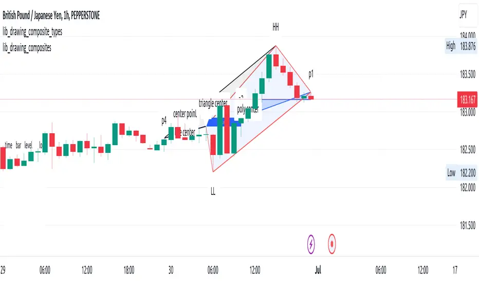 methods to draw and manage composite obejects. Based on Trendoscope's tradingview.com/script/eNM7BFaR-DrawingMethods/, added Triangle and Polygon composite objects, fixed tostring method output to be actual json