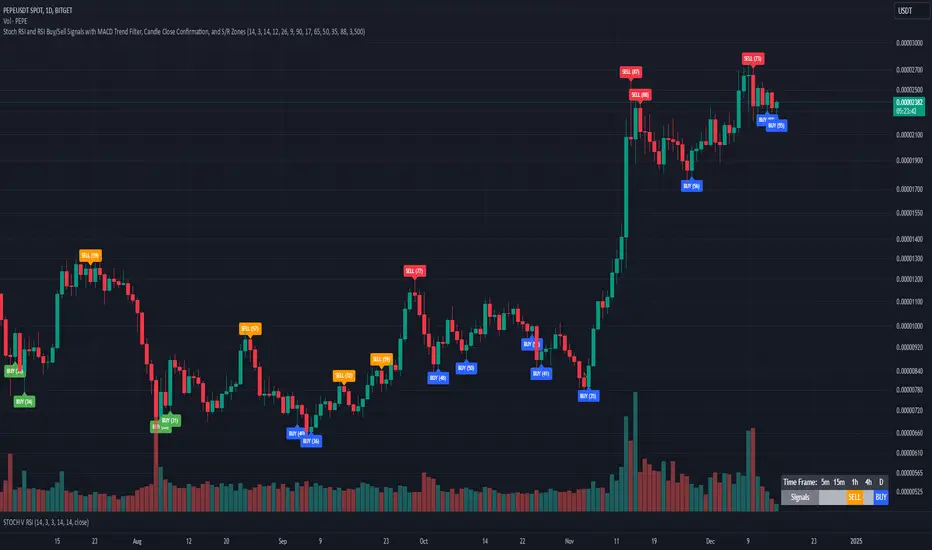 Atualizado Stoch RSI and RSI Buy/Sell Signals with MACD Trend Filter