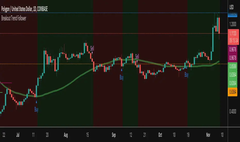 This is a Study mirroring the Breakout Trend Follower Strategy I made. I use this one during live trading and the other for backtesting. It will also give alerts when buy and sell signals are hit.