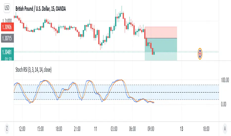 This Stoch RSI has a 50 line to help determine if the momentum is going up or down. Under 50, down and above 50 is up.