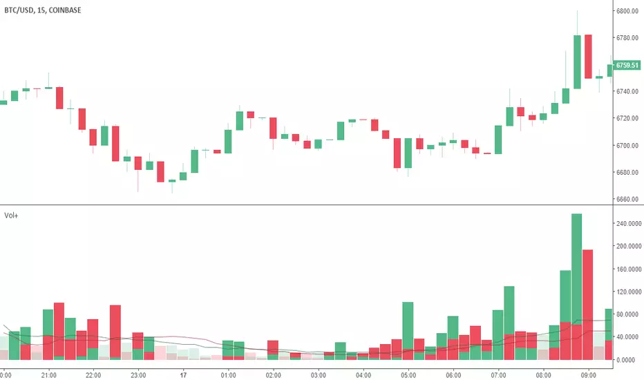 Inferred Bullish Volume - This subtracts Bearish Volume out of the Total True Volume. But without the bull-volume data from the exchange, we can only forensically infer the bullish volume by evaluating OHLC data to guess what ratio of upward v/s downward movement happened within the candle.