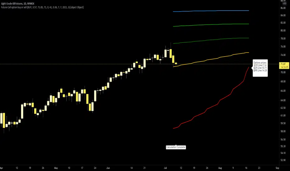 The indicator is based on the Black-Scholes model, which uses partial differential equations to determine the option pricing. Due to options non-linear behavior, it is hard to visualize the option price. The indicator calculates the solutions of the Black-Scholes equation and plots them on the chart so traders can view how the option pricing will behave.