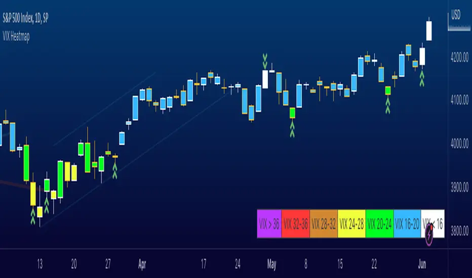 - The VIX HeatMap, color-maps important VIX levels (7 in this case) in measuring volatility for day trading & swing trading.