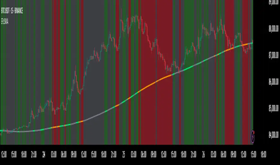 - Adapt to Changing Market Regimes: Markets shift between high and low volatility. EFzSMA's unique Adaptive Deviation Normalization adjusts how it perceives price deviations based on recent market behavior (percentile rank). This ensures more consistent analysis whether the market is quiet or chaotic.