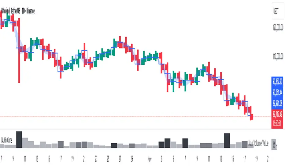 IA VolCore is an intra‑candle volume analysis tool that shows where the core traded volume is concentrated inside each candle.