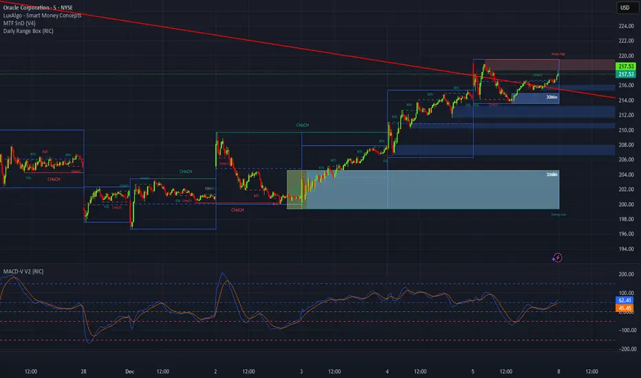 This update enhances the "Daily Range Box" indicator by adding user-configurable inputs for colors and line styles. Users can now customize the box border color and the midline color independently through dedicated color picker inputs. Additionally, separate dropdown menus allow selection of line styles (Solid, Dashed, or Dotted) for both the box border and the midline, enabling personalized visualization while maintaining the core functionality of drawing daily range boxes with midlines across all timeframes.Script de código aberto